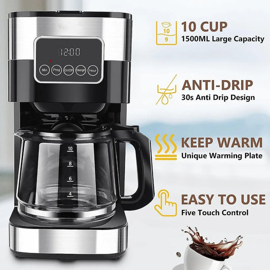 10 Cup Programmable Coffee Makers Mini Coffee Machine with Carafe, Electric Coffee Maker, Mini Coffee Pot