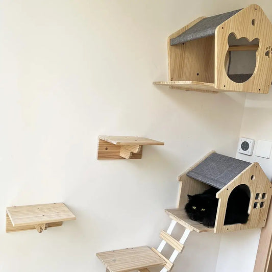 1 Piece Wall Mounted Cat House Climbing Floating Wooden Shelf Kitten Villa for Sleeping and Resting Pet Wall Indoor Furniture